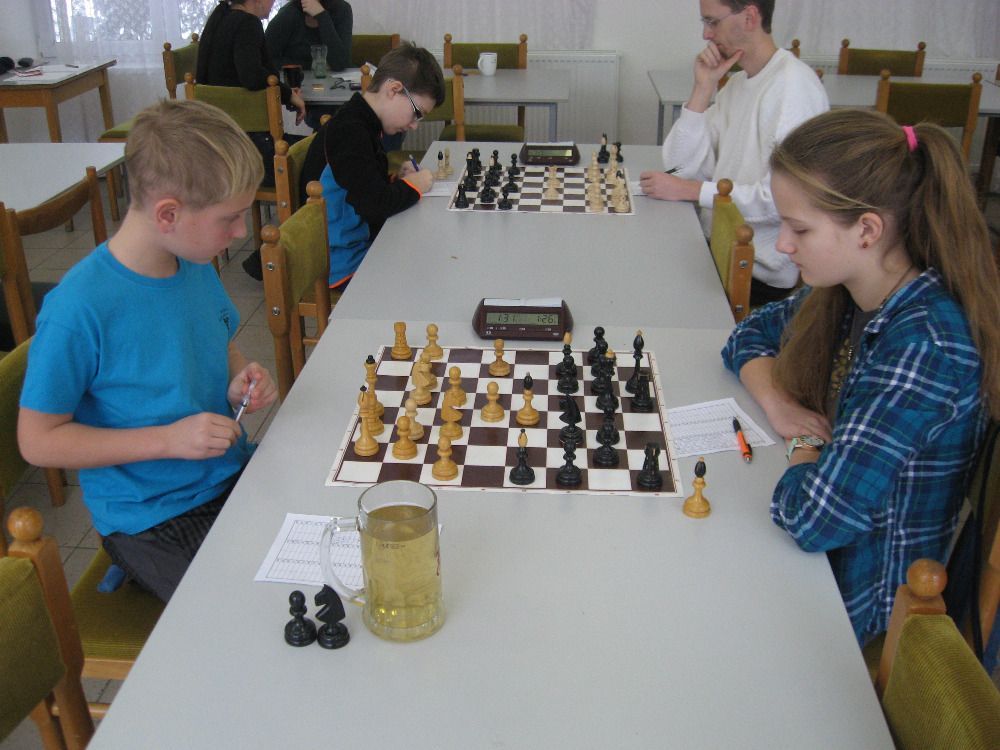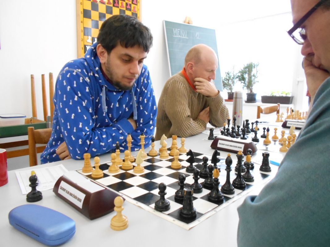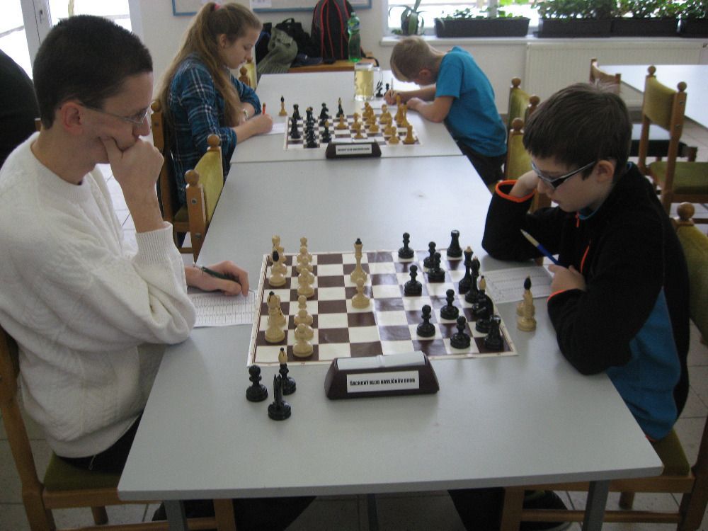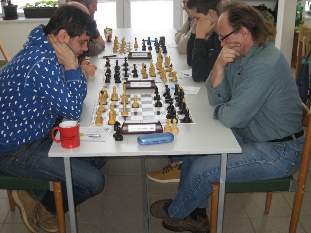 V tomto utkání jsme nastoupili v sestavě Ján Dlasek, Jiří Havel, Igor Domkář, Tomáš Němec a Vítek Fencl. Vítek na páté šachovnici se svou soupeřkou bojoval, ale její větší zkušenost se projevila a zvítězila. Tomáš na čtvrté šachovnici se snažil vzdorovat mnohem zkušenějšímu soupeři, ten ho postupně dostal pod tlak, který zúročil a zvítězil. Prohrávali jsme tedy 0:2. Jako třetí dohrál Igor Domkář, který dokázal svou velmi dobře hranou partii dovést do vítězného konce a vykřesal nám jiskru naděje. Situace na zbývajících dvou šachovnicích, byla v náš prospěch. Na druhé šachovnici se mi podařilo nejdříve získat kvalitu, pak střelce, postavit druhou dámu a zakončit partii matem. V poslední partii Honza od začátku sbíral tempa, která dokázal zkušeně využít a soupeře zmatil, a získal tak rozhodující bod. Tímto vítězstvím se nám podařilo dostat se před svého soupeře na čtvrté místo tabulky.