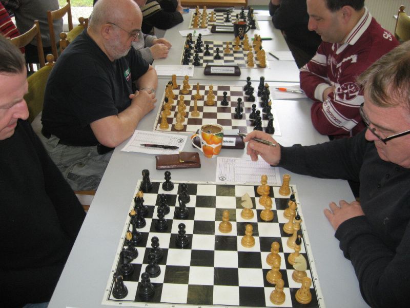 A opět se dostáváme do hry, když na osmé šachovnici vyhrává Jarda Melichar. Soupeř zkoušel nabídnout asi pětkrát Jardovi remíz, kterou Jarda vždy odmítl, stál lépe a časem získal pěchy navíc a to partii rozhodlo… 2:2